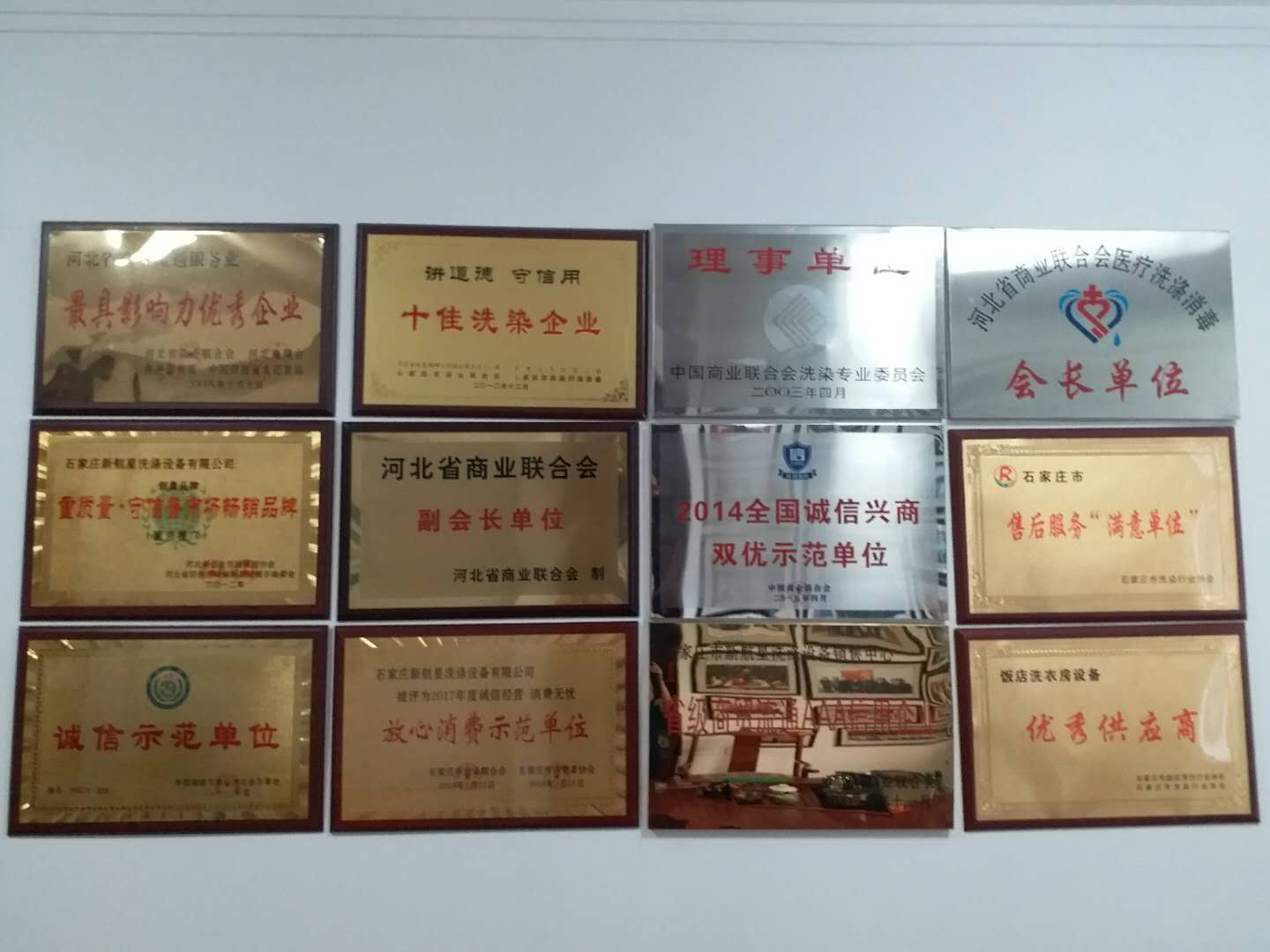 “奧運獎牌”是證明了一個運動員的競技能力,“吉尼斯證書”證明了一個人在某一項事件中是人,而石家莊新航星洗滌設備公司的“榮譽墻”則證明了公司的實力。"誠信示范單位"證書和"放心消費示范單位"證書說明石家莊新航星是一家值得信任的公司,講信用守誠信;"售后服務滿意單位"證書肯定了石家莊新航星的售后服務質量;"蕞具影響力企業(yè)"證書和"十佳洗染企業(yè)"證書體現了石家莊新航星作為洗染行業(yè)的一員,為行業(yè)所作出的貢獻。